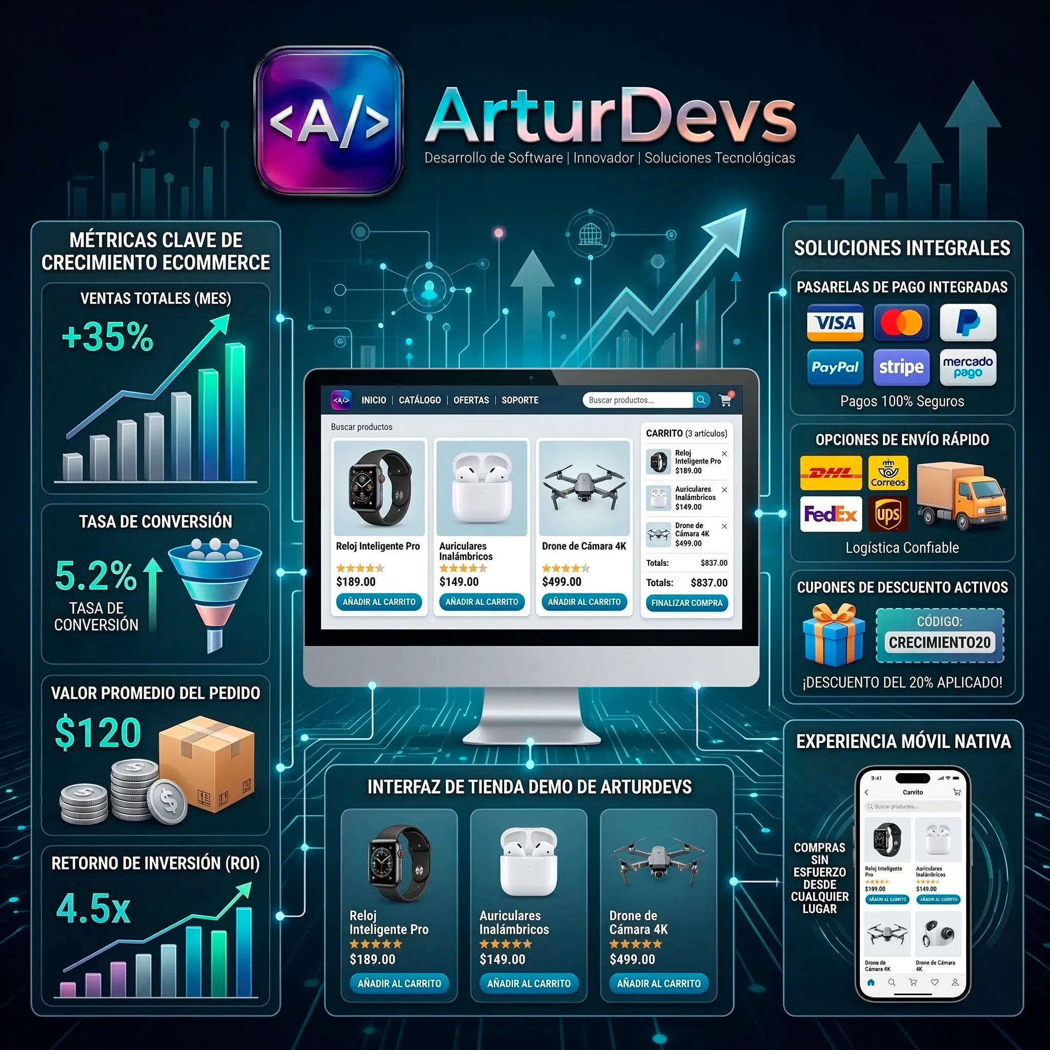 En ArturDevs construimos tiendas online con visión comercial y operativa: